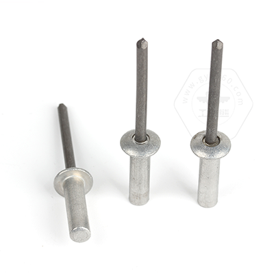 與開(kāi)口型鉚釘對(duì)比:開(kāi)口型鉚釘安裝時(shí)需要額外的工具來(lái)固定,而封閉型圓頭鋁鉚釘通過(guò)其封閉設(shè)計(jì),在安裝后能夠提供更好的密封效果和較高的抗腐蝕性。